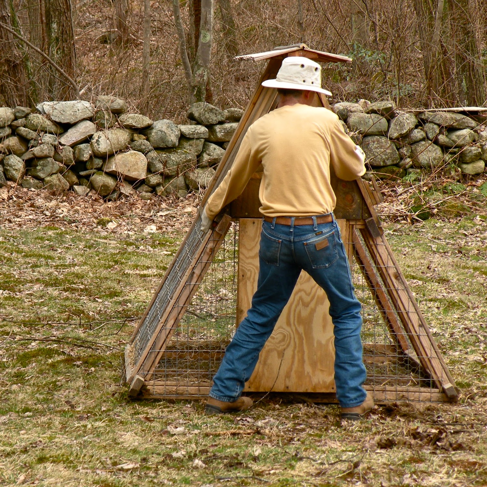 We live on a south-facing slope, and their summer location is peppered with above-ground maple roots, so positioning the ark so it was level and the door would properly open was important. Don't want undue stress on those hinges, ya know.